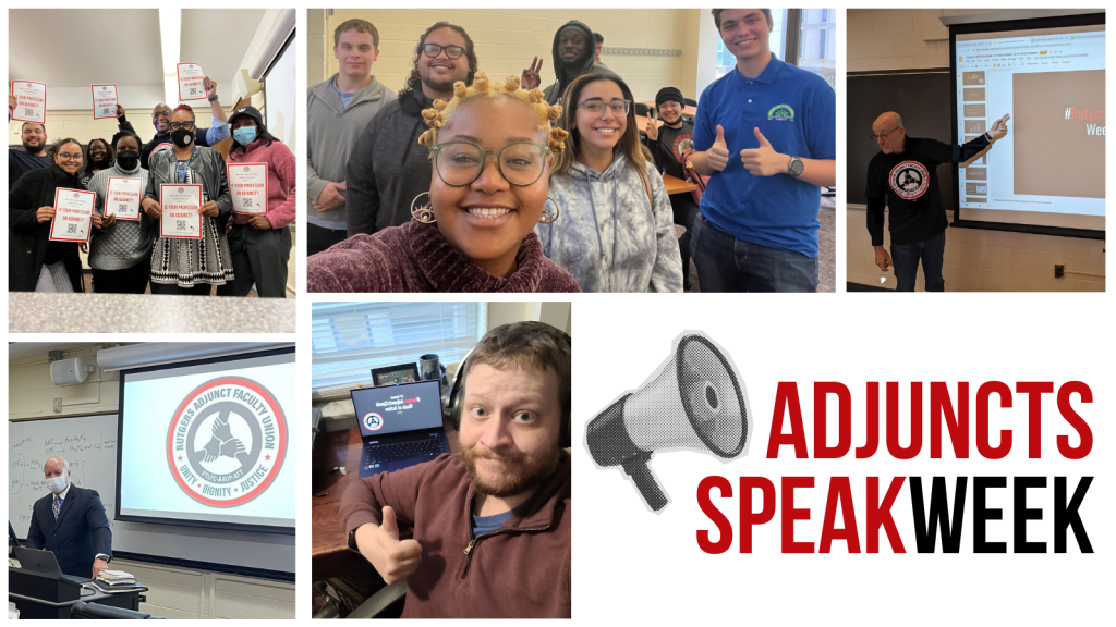 Next week, from February 26 to March 1, our lecturer colleagues in the Rutgers Adjunct Faculty Union will be holding their annual Adjuncts Speak Week to call attention to the role that adjunct faculty play at the university. This year, lecturers are focusing on the ways that the Rutgers administration has failed to prioritize students’ classroom experience, even as it asks them to pay increased tuition and fees.