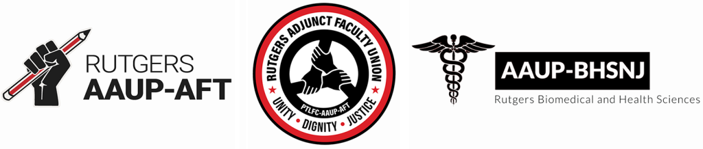 Our unions—Rutgers AAUP-AFT, which represents full-time faculty, graduate workers, postdoctoral associates, and counselors; the Rutgers Adjunct Faculty Union (PTLFC-AAUP-AFT), which represents Part-Time Lecturers; and AAUP-BHSNJ, which represents Biomedical and Health Sciences faculty—refuse to prop up artificial and outdated divisions that diminish our voices and our power and that leave us with different degrees of job security, pay, and benefits depending on campus or title.